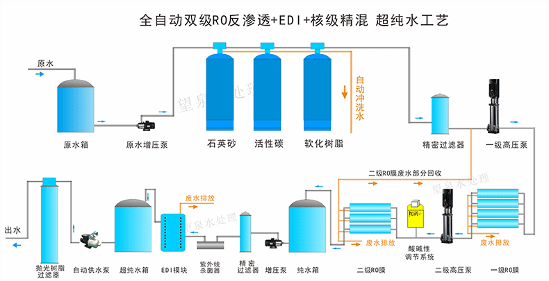 具 體 說(shuō) 明 | 技術(shù)參數(shù): 1)前兩級(jí)或三級(jí)罐體,第一級(jí)石英砂過(guò)濾器,第二級(jí)活性炭過(guò)濾器,第三級(jí)軟化過(guò)濾器,第四級(jí)精密過(guò)濾器,第五級(jí)是RO膜,后面加EDI 注明:源水為自來(lái)水(不是地下水或水硬度不高時(shí),第三級(jí)軟化過(guò)濾器可以不要) 2)過(guò)濾次序: 源水泵 砂濾器 碳濾器 軟水器 精濾保安濾器 RO反滲透主機(jī) 純水箱 (紫外線殺菌器 各個(gè)管線飲水機(jī))EDI模塊 超純水箱 注明:臭氧殺菌器,紫外線殺菌器根據(jù)實(shí)際需要選擇。 前三級(jí)罐體材質(zhì):玻璃鋼 主機(jī)支架材質(zhì):304不銹鋼 產(chǎn)水運(yùn)行可自動(dòng)控制,維護(hù)時(shí)可手動(dòng) 脫鹽率:99% 適用水源:自來(lái)水,地下水 出水電導(dǎo)率:<1 出水電阻率:10-18.25 |