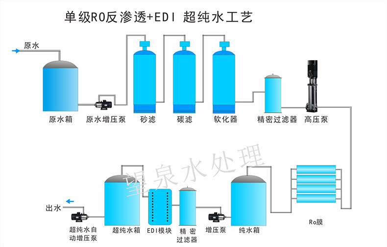 具 體 說 明 | 技術參數: 1)前兩級或三級罐體,第一級石英砂過濾器,第二級活性炭過濾器,第三級軟化過濾器,第四級精密過濾器,第五級是RO膜,后面加EDI 注明:源水為自來水(不是地下水或水硬度不高時,第三級軟化過濾器可以不要) 2)過濾次序: 源水泵 砂濾器 碳濾器 軟水器 精濾保安濾器 RO反滲透主機 純水箱 (紫外線殺菌器 各個管線飲水機)EDI模塊 超純水箱 注明:臭氧殺菌器,紫外線殺菌器根據實際需要選擇。 前三級罐體材質:玻璃鋼 主機支架材質:304不銹鋼 產水運行可自動控制,維護時可手動 脫鹽率:99% 適用水源:自來水,地下水 出水電導率:<1 出水電阻率:10-18.25 |