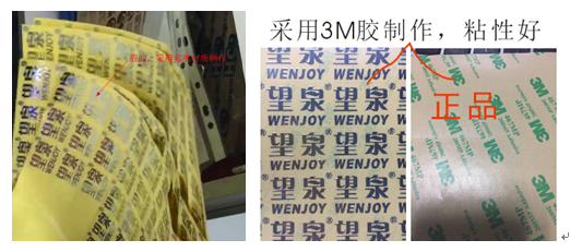 1)假的采用劣質(zhì)材料制作,粘性差 望泉采用3M材料制作,粘性好