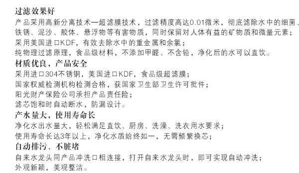 使用壽命: ≥3年(當原水為市政自來水時,根據水質差異,濾芯使用壽命不同,但一般不低于3年)